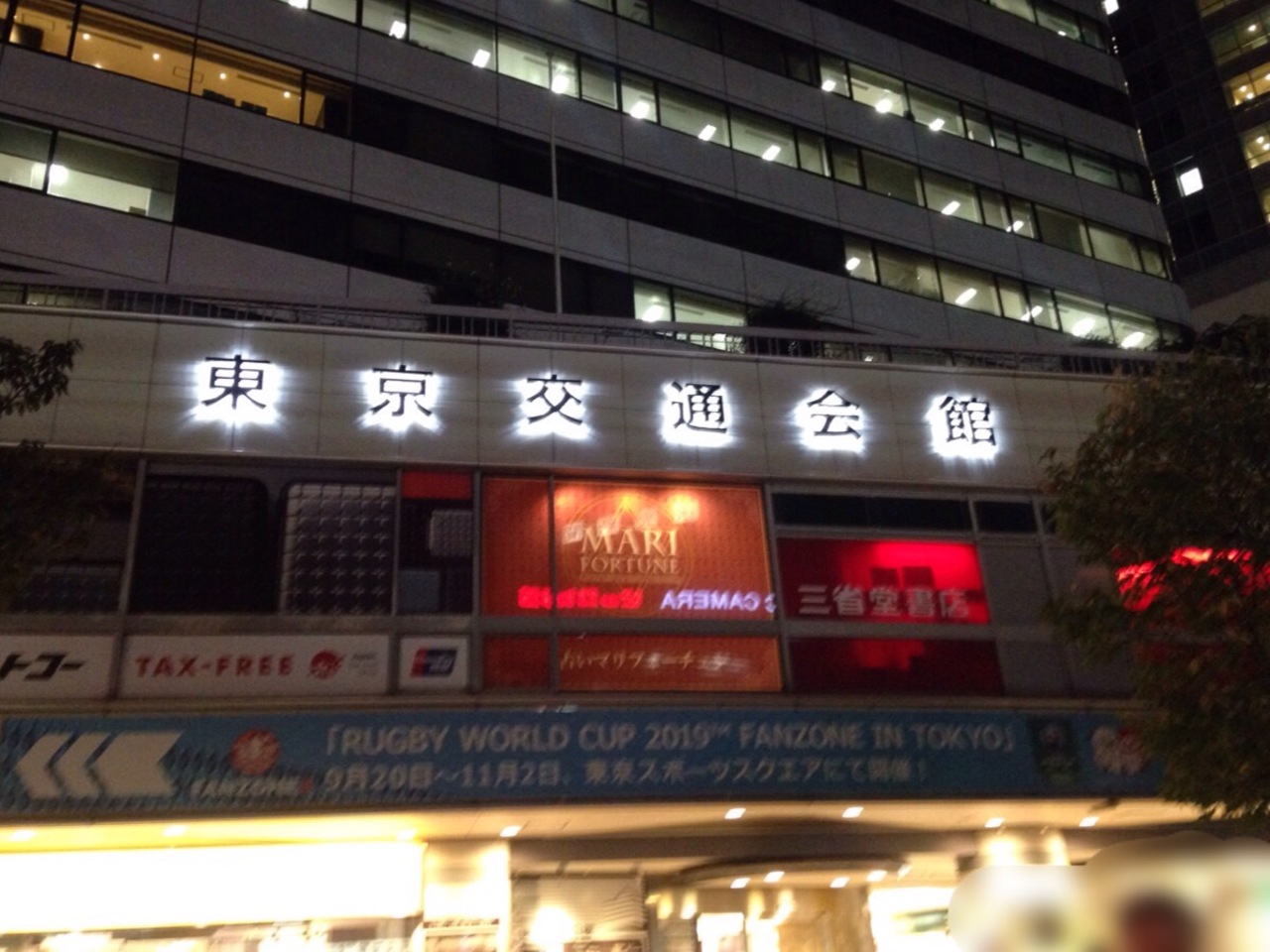 JR有楽町駅の日比谷口の前にあります。歩道を歩いていて見えるぱっと見の目線はガラス張りが目立って新しい建物のように見えなくもないですが1969年竣工とのことで中に入ると壁などに昭和の香りを感じます。地下にはマクドナルドもありますし駅前の飲食店街として食事時の候補にもなると思います。