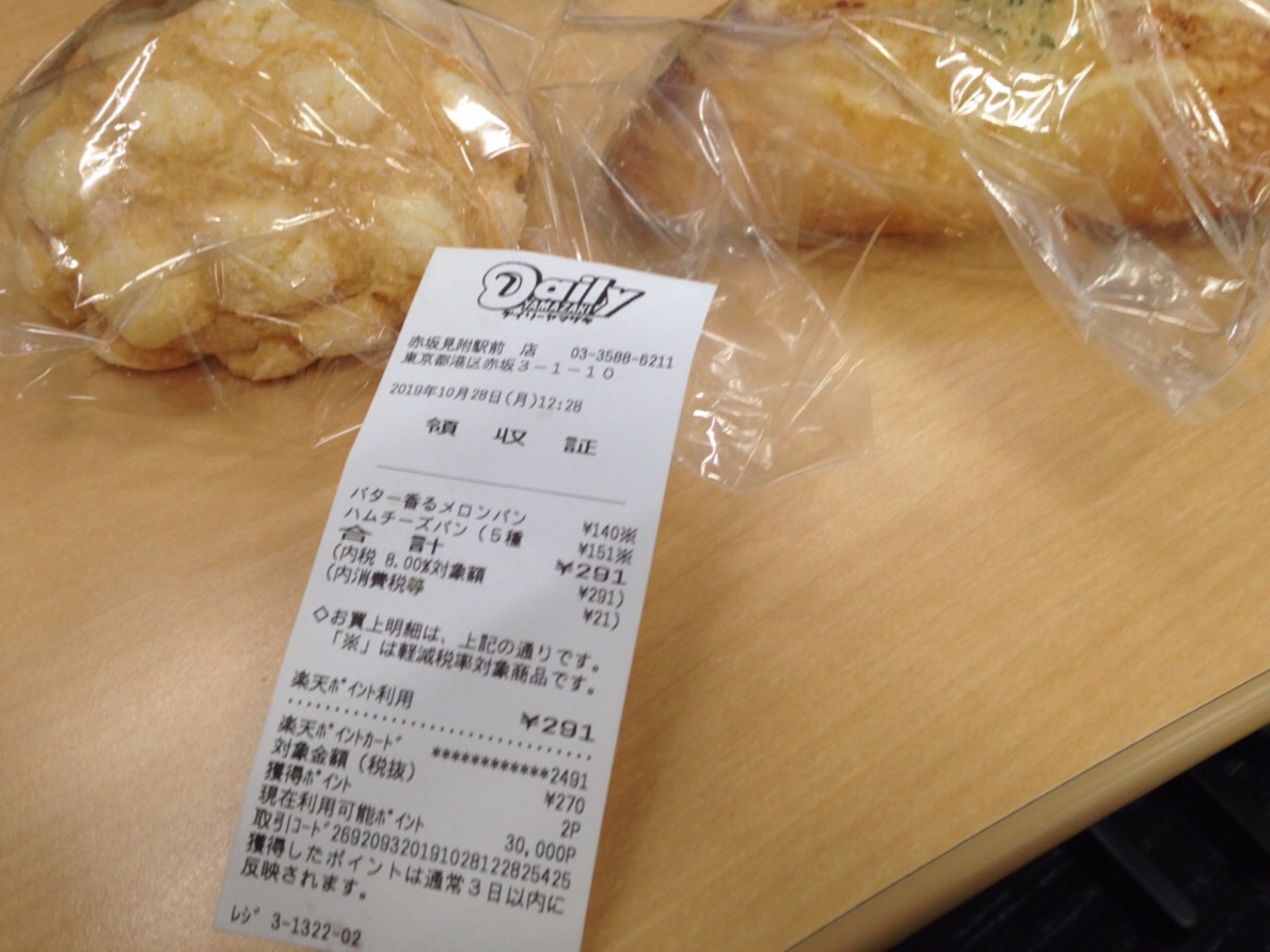 近くの赤坂3丁目店に行った時に焼きたてパンを取り扱っていないようだったのでこちらに来たら扱っていました。甘いものは控えようと思っていても、ついメロンパンを手に取ってしまいます。やはり工場で作って運ばれて来たものより満足感がありますね。