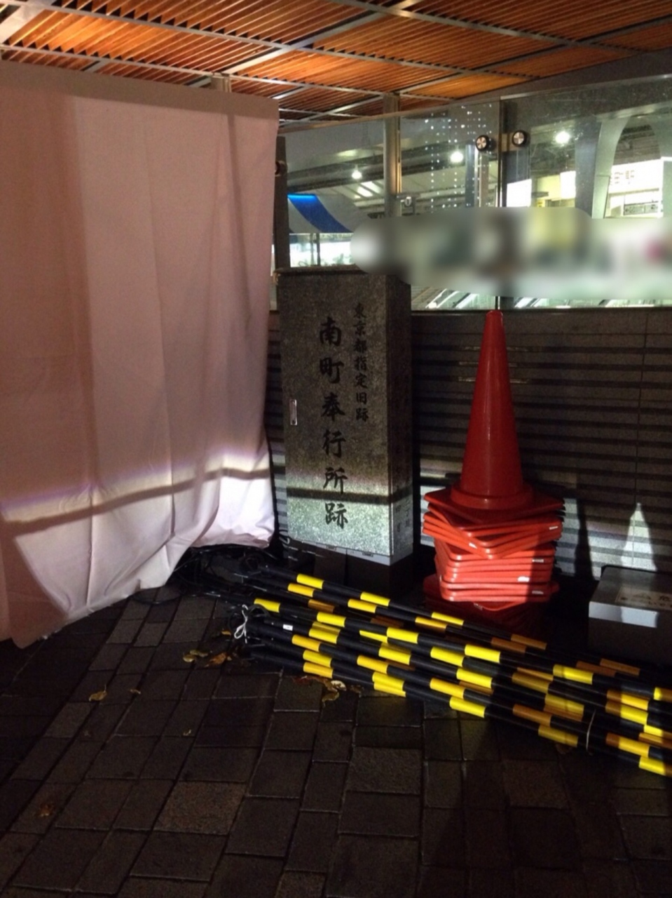 JR有楽町駅の中央口付近に墓石みたいな石碑があります。よく見ると取ってが付いているので何かの物置になっていて前に開くのかと想像すると興醒めでした。近くを工事中だったのか資材が置かれていましたが本来は横手に説明のプレートがあるのでそちらにある発掘当時の写真と説明文のほうを忘れずに見た方が良いです。