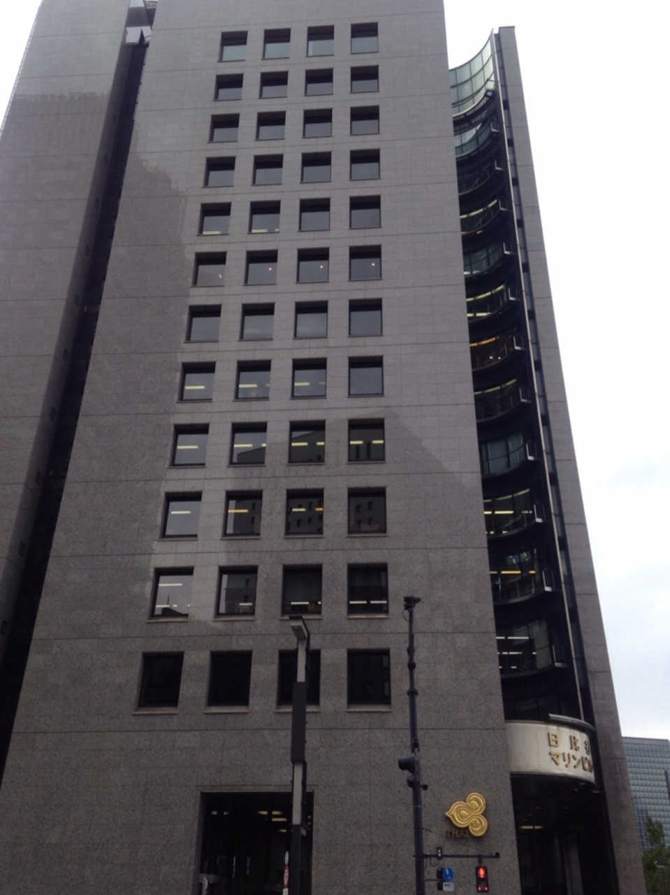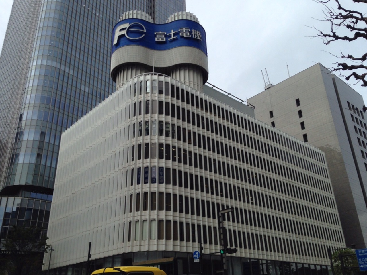 日比谷マリンビルの隣にあります。ツインタワーとはやっぱり屋上から伸びている二本の円柱のことでしょうか。二本の円柱に巻きつくように富士電機の看板が出ていますが架けかえるのも大変そうな看板だななどと考えてしまいます。奥には東京ミッドタウン日比谷がそびえますが外壁が曲面構成なのが調和しているとも言えますかね。