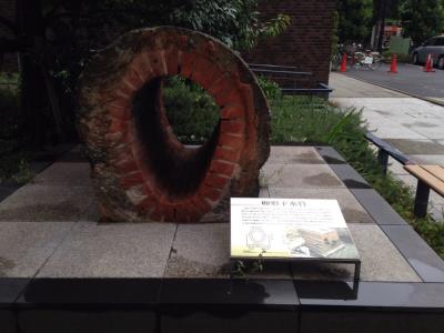 横浜都市発展記念館の中庭にあります。日本大通りで発見されたもので明治時代の外国人居留地に整備されていた下水施設です。断面が卵形のものは何度か見たことがあり何故卵形なのだろうとずっと疑問に思っていましたが一定の流速を確保するためだそうで長年の疑問が解けました。