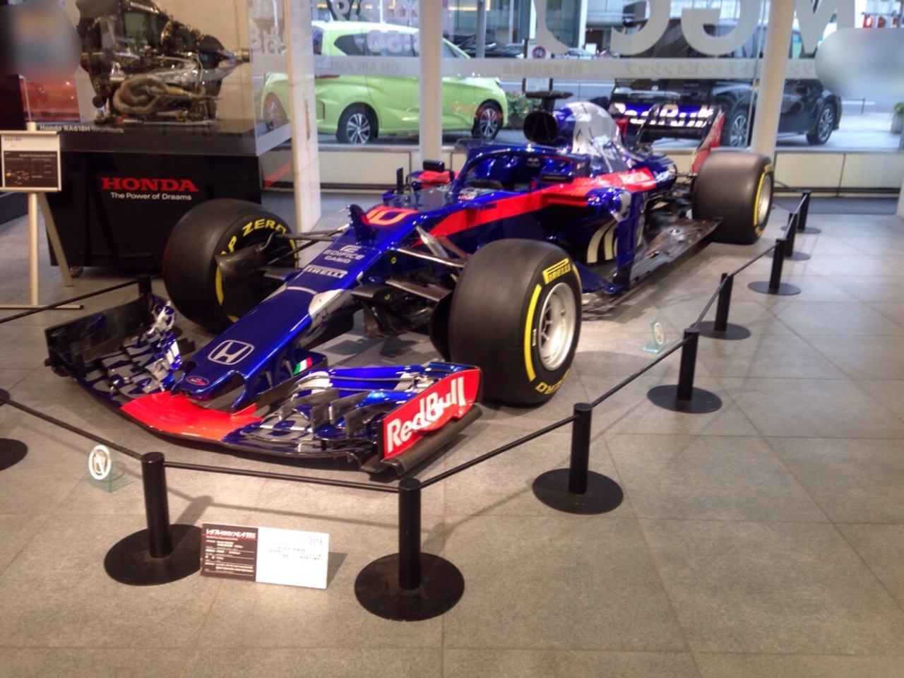 青山一丁目の交差点のところですね。前を通りかかったら中にF1が展示されているのが見えたので入ってみました。2018年のアブダビGPを走った実車だそうで近くにエンジンも展示されていました。本物のF1マシンが間近で見られるのでおすすめです。18時までなのでもう少し遅くまで開いててくれるといいのですが。