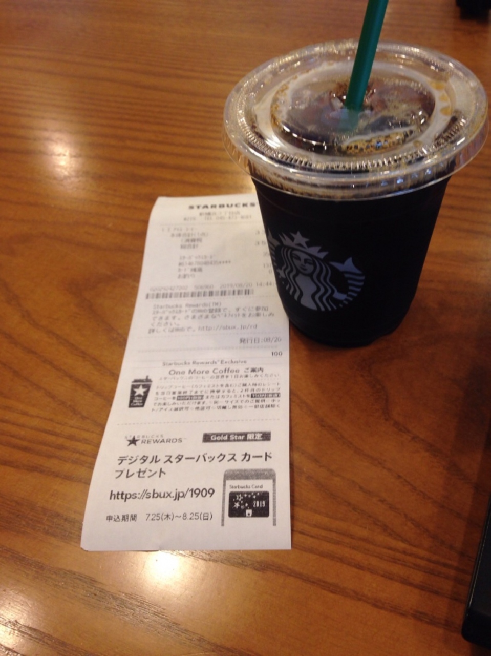 ダイワロイネットホテルの隣で、新横浜に何軒かあるスタバの中で一番駅から離れているせいか、やや空いているかなと感じました。真ん中の大テーブルにコンセントがあります。 アイスのドリップコーヒーを注文したら本日はイタリアンローストだと教えてくれて、そういえば日替わりの豆だったなと再認識できました。