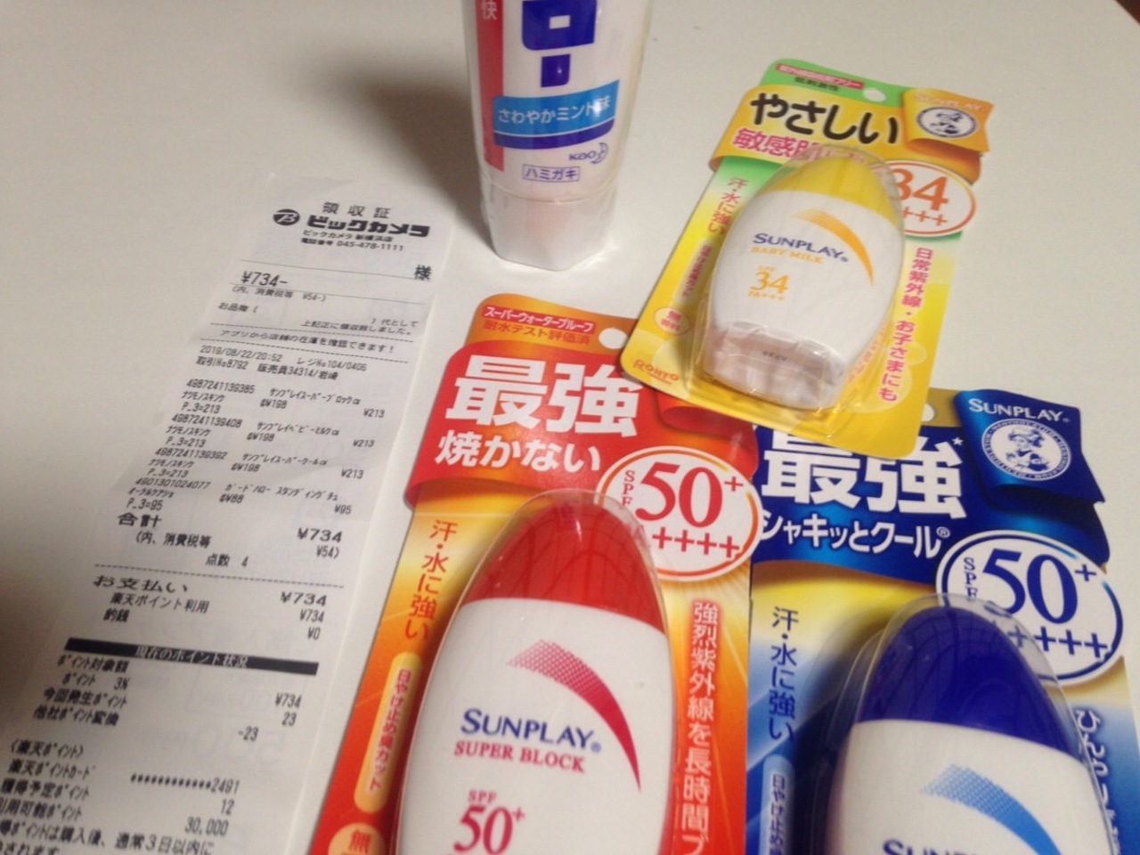 新幹線を降りて21時の閉店の間際に買い物できました。エスカレーターを上がった4階に薬売り場があり、歯磨き粉とそろそろ店頭に並ばなくなるかなと思って日焼け止めを買い足しておきました。楽天ポイントで支払いができるので非常に助かります。