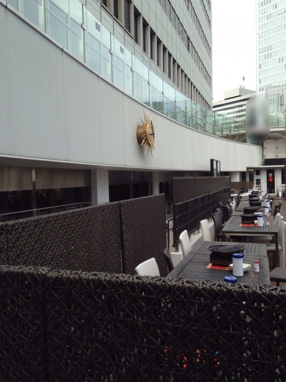 サウスゲートビルディングの15階から行けました。太陽のオブジェがあってどことなくスペインっぽいなと思ったらやはりスペイン風中庭(パティオ)をお手本にしているそうです。ただ、ビアガーデンの時間帯以外は閉鎖されていましたので気をつけて下さい。