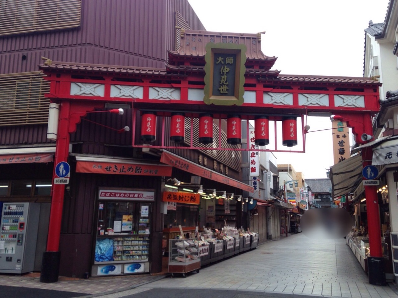 川崎大師の大山門に至る道が仲見世になっていて飴や煎餅、漬け物など日本的な食べ物屋さんや、招き猫がこれでもかと並んだ縁起物のお店などが続きます。そんなにも長い商店街でもないので気になるものがあったら立ち止まって全部見ていっても良いと思います。