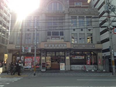 建物はレトロで貴重そうなのですが一階は看板がべたべたとあって、よく見たら「なか卯」でした。