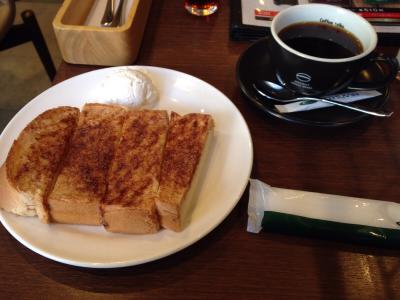 シナモントーストのモーニングと蔭干し珈琲を注文。