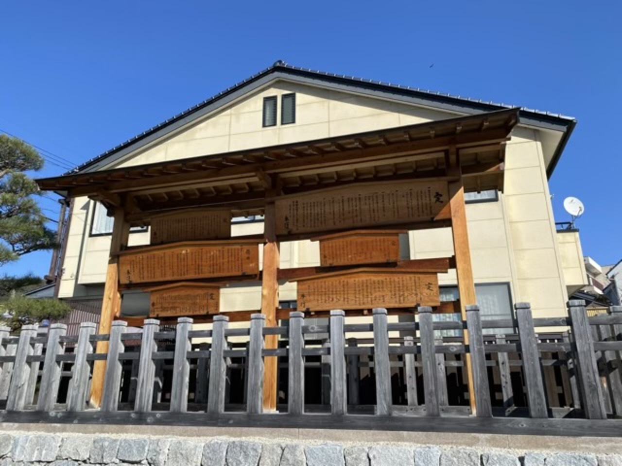 下諏訪駅から諏訪大社下社秋宮を目指して歩くと国道と旧中山道との分岐点にありました。高札跡はたまに見かけますがこちらのものは高札が6個もあって結構高い位置にあるので存在感が凄いです。最後に「奉行」と書かれているところが妙に生々しかったです。