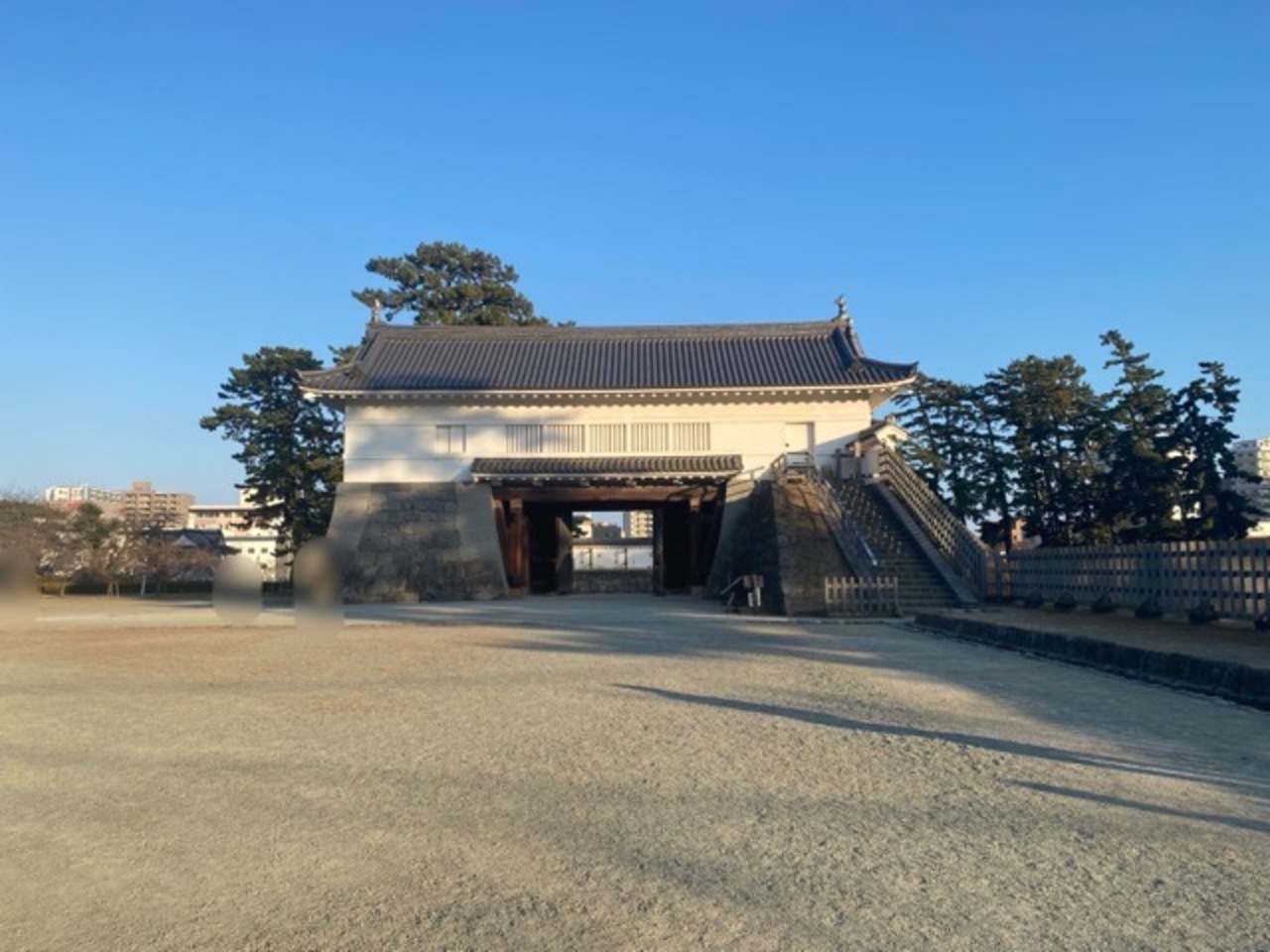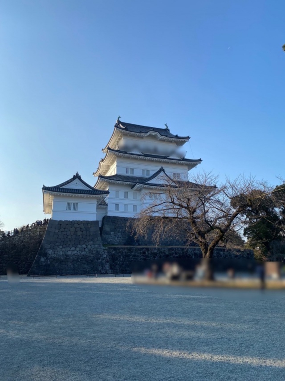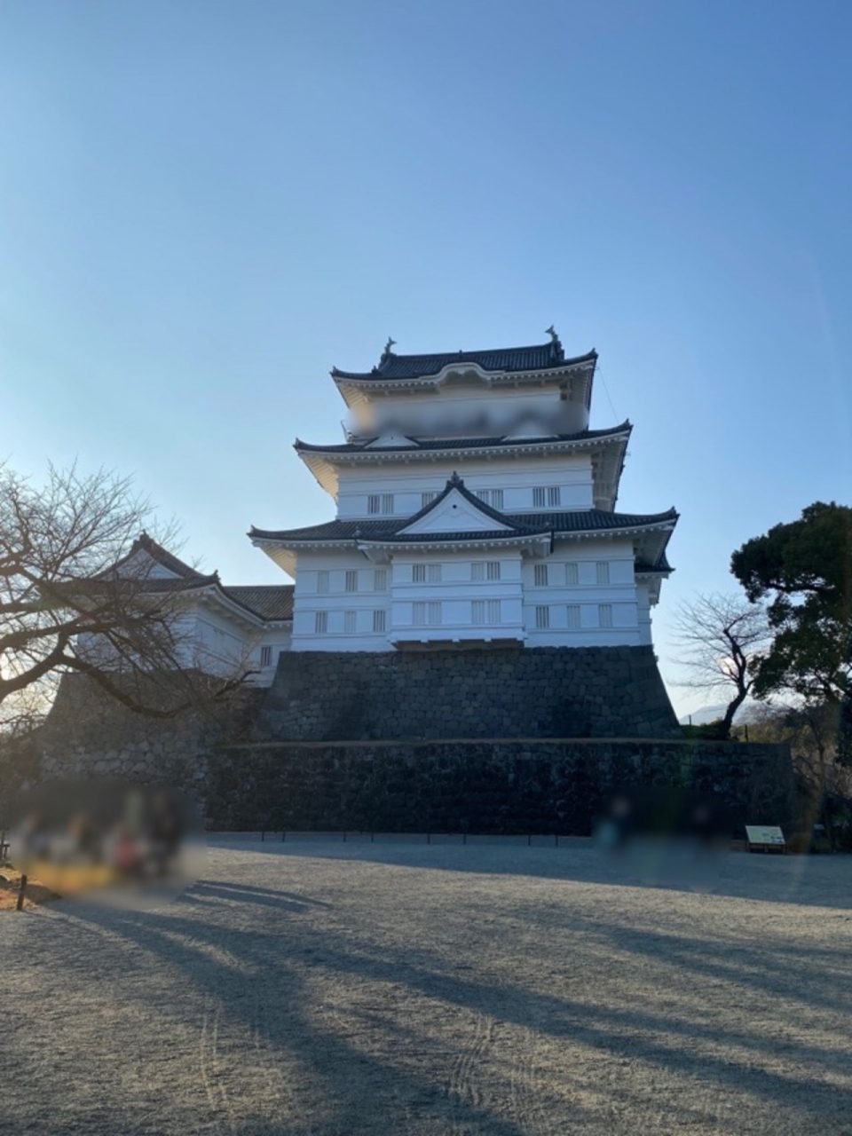 小田原城には西側のこども遊園地から入ったので帰りは東側の常盤木門から出ることにしました。こちらがお城の正面の門ですね。天守閣同様に新しいので復興されたものですね。白い壁の部分がしっかりとしていて角もシャープで生クリームを塗ったケーキみたいでした。