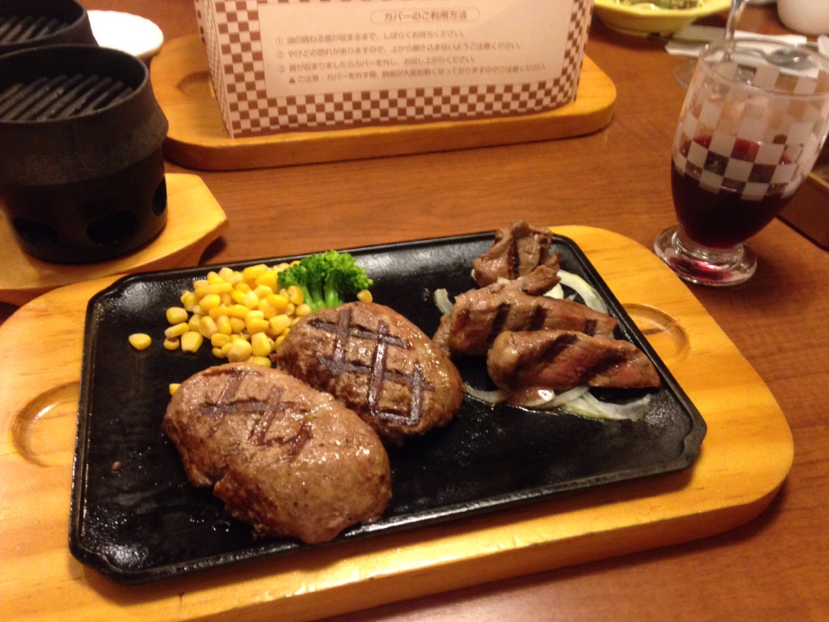 初めてだったので看板メニューらしい大俵ハンバーグと切り落としステーキを注文。