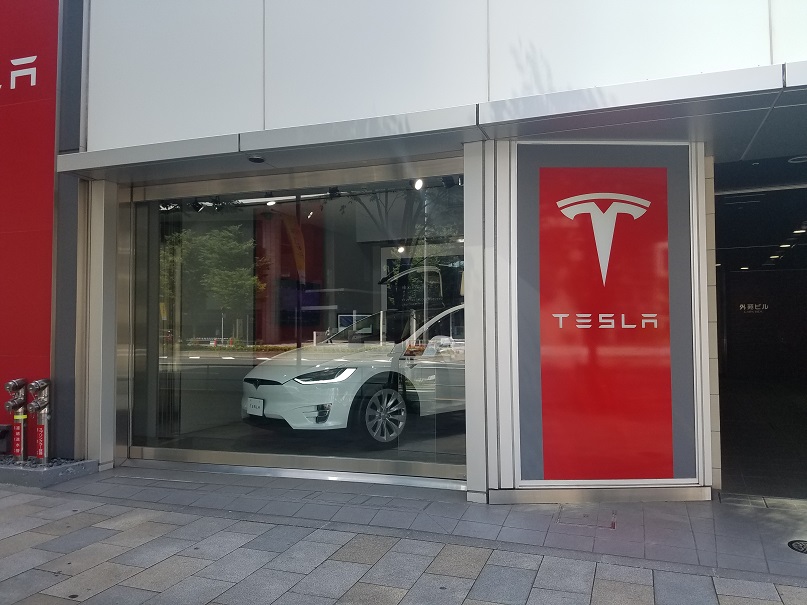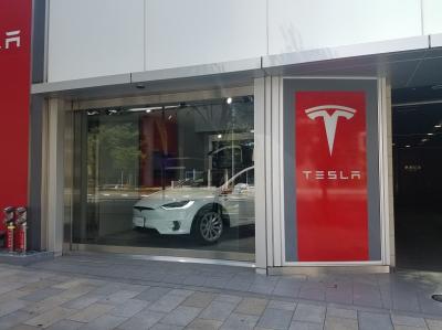 外苑前駅近くの青山通り沿いにある、何かと話題のテスラのショールームです。