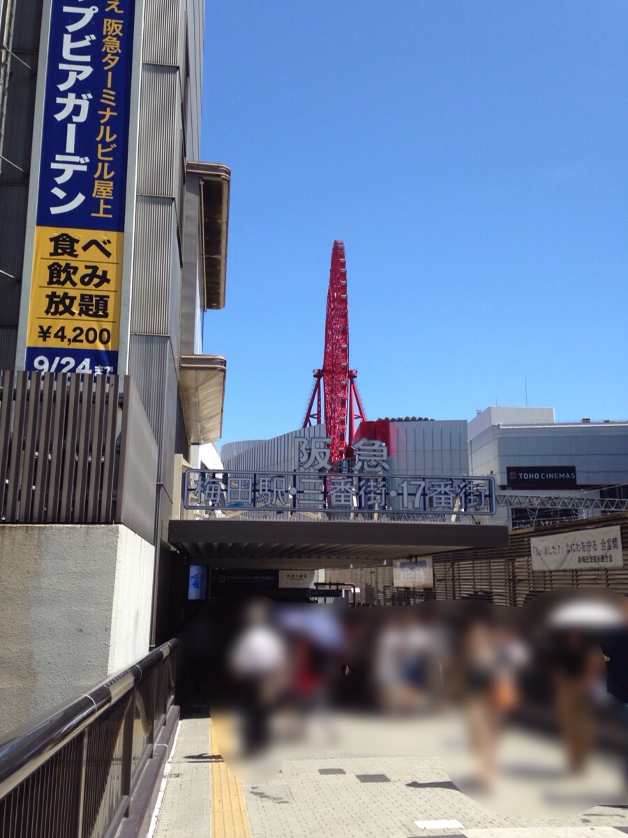 梅田のHEP FIVEの屋上にある赤い観覧車です。