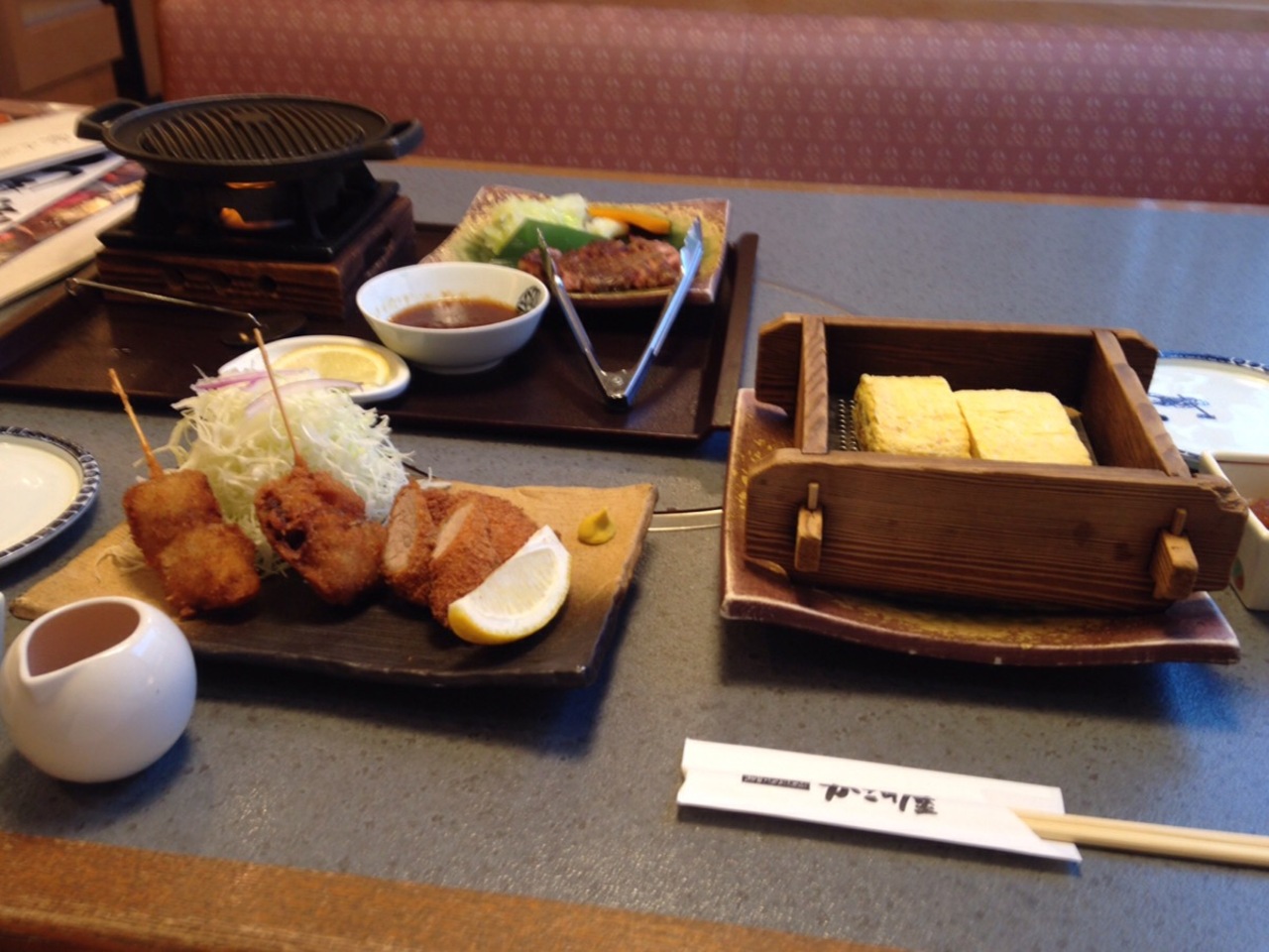 料理屋のだし巻き玉子は最初の一口が物凄く美味しかったのですが焼肉をせっせと焼いて食べているうちに冷めてしまい味が落ちてしまったのが残念でした。- 旅行時期