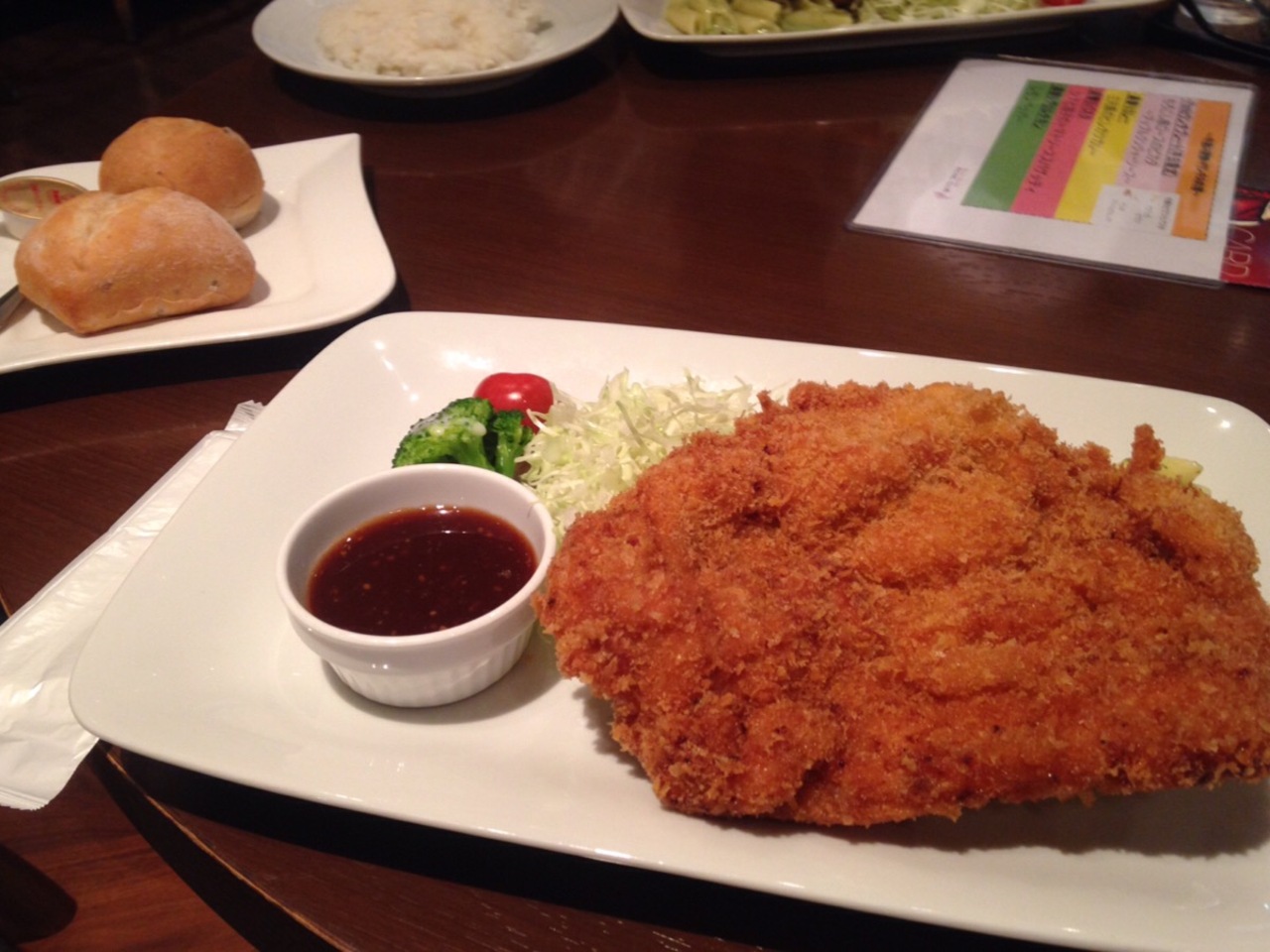 看板にあったジャンボチキンカツが気になったので注文。衣で大きさを誤魔化しているとかでもなく、しっかりと肉の味を堪能できました。