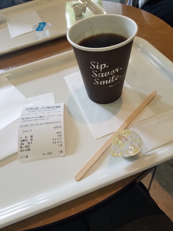 ベーシックそうなアメリカーノのshortを250円を注文。アメリカンってことでしょうか薄い気がしました。