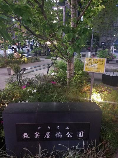 東銀座から銀座方面にブラブラ歩いて数寄屋橋の交差点に来たらちょっとした緑の空間が目に入りました。