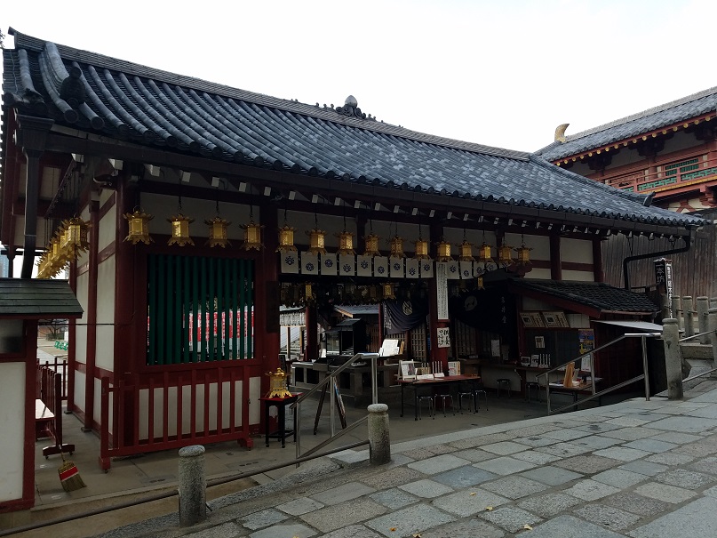 背景の五重塔などと比べると随分と質素なお堂ですが、四天王寺が仏教の様々な宗派にこだわらないスタンスの寺院であることを改めて感じました。- 旅行時期