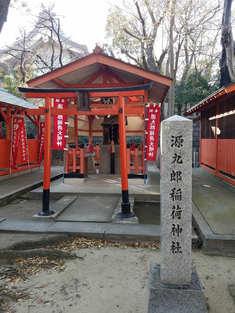 生國魂神社の末社の一つで、日本三大稲荷の一つ奈良の源九郎稲荷神社の分霊です。