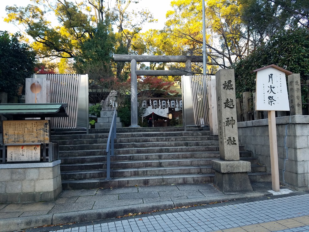 四天王寺建立と同時期に創建され、明治中頃まで境内の南にあった堀を越えて参詣したので堀越という名前になったそうです。