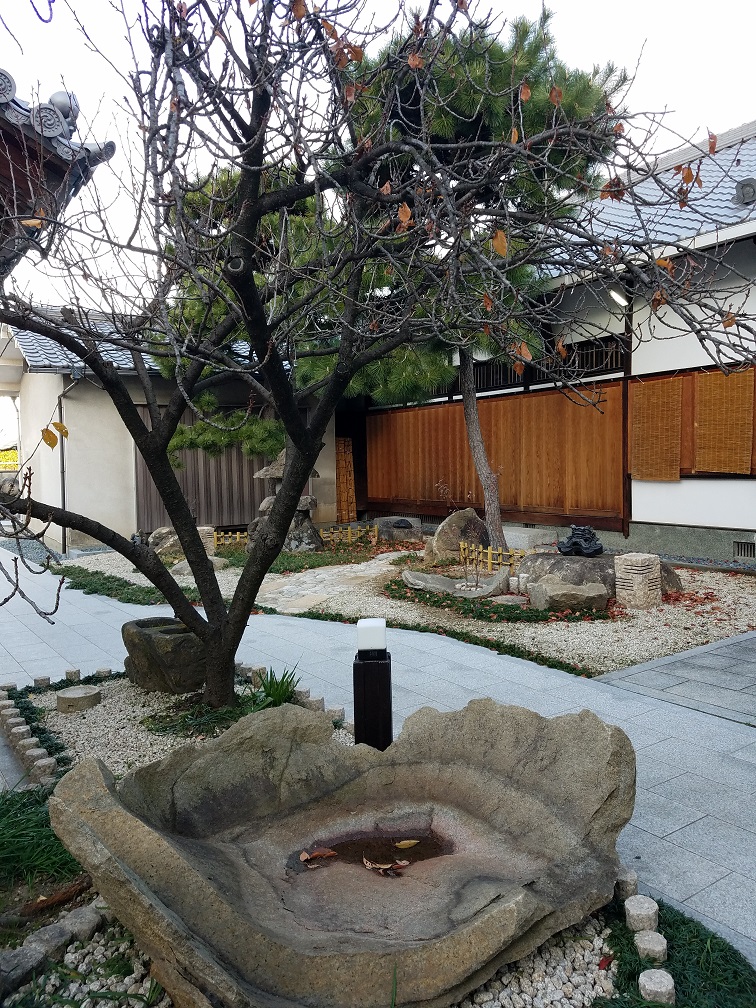 門を入るとすぐに松や石灯籠に白い砂利が敷いてあるお庭が見えました。
