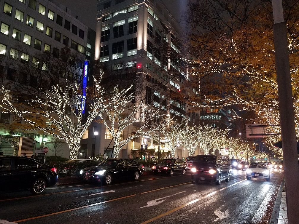 11月末の夜に青山通り沿いの表参道交差点を通りかかったら派手にイルミネーションが施されていました。