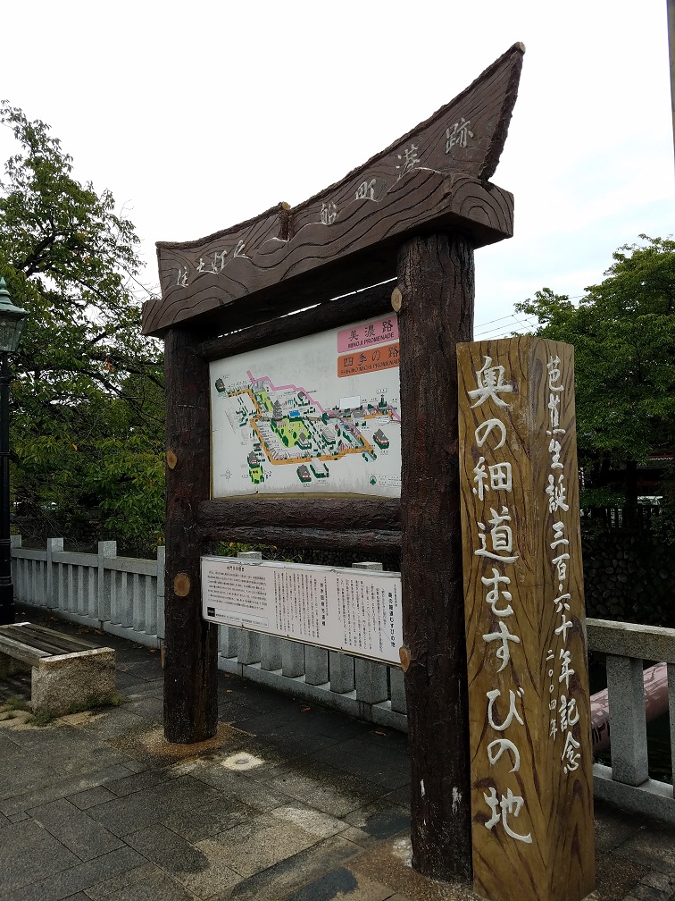 奥の細道と言うとなんとなく山形あたりを思い浮かべますが大垣が最終地点とのことで芭蕉の像があったり句碑があったりします。