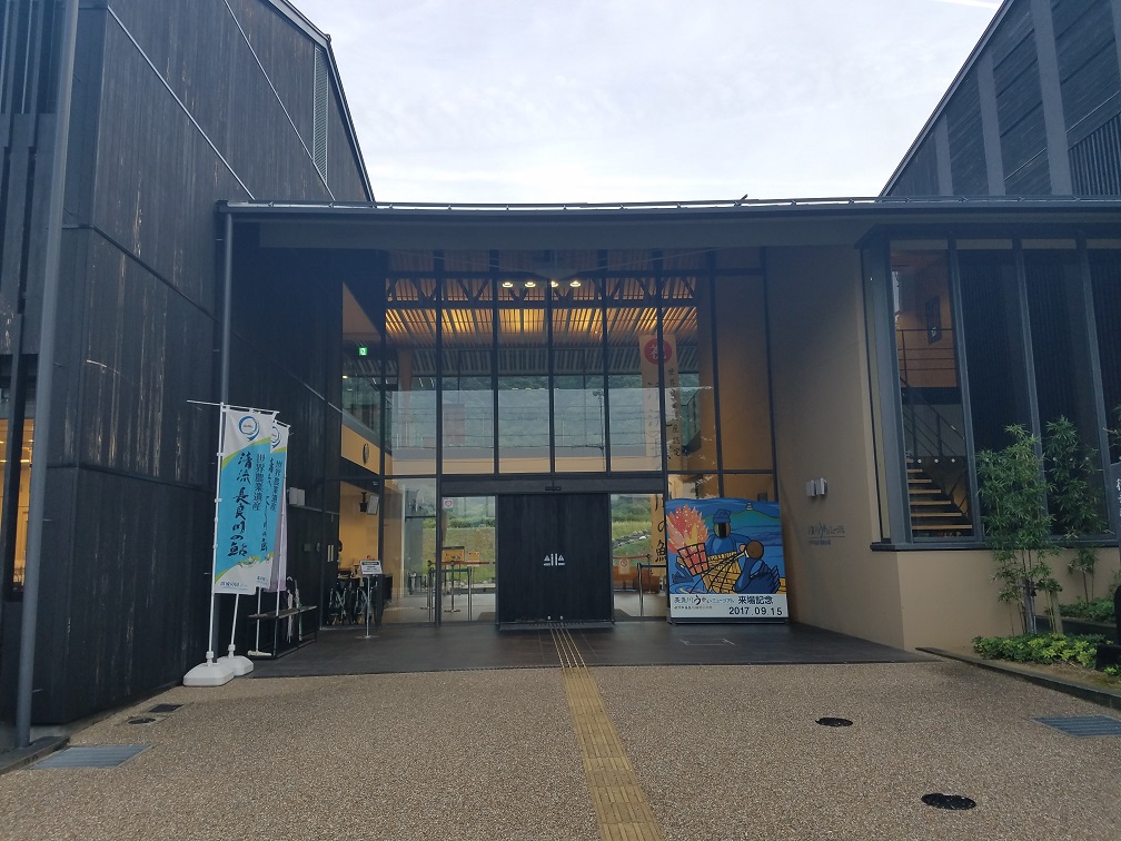 黒いモダンな建物でガラスの面も大きく、長良川を眺められるラウンジもあります。