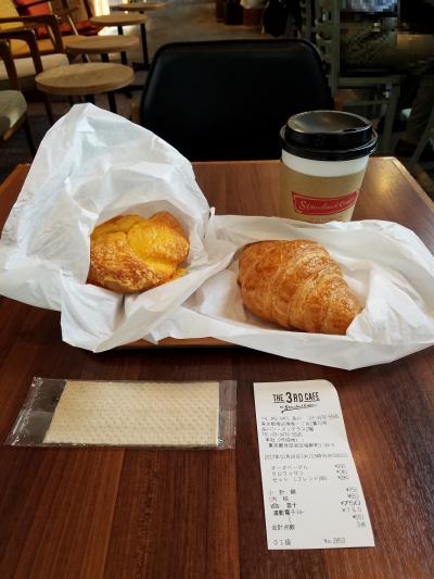 ランチセットもありましたがパンを食べたかったのでレジ横のショーケースからチーズベーグルとクロワッサンとブレンドコーヒーのLサイズを注文。