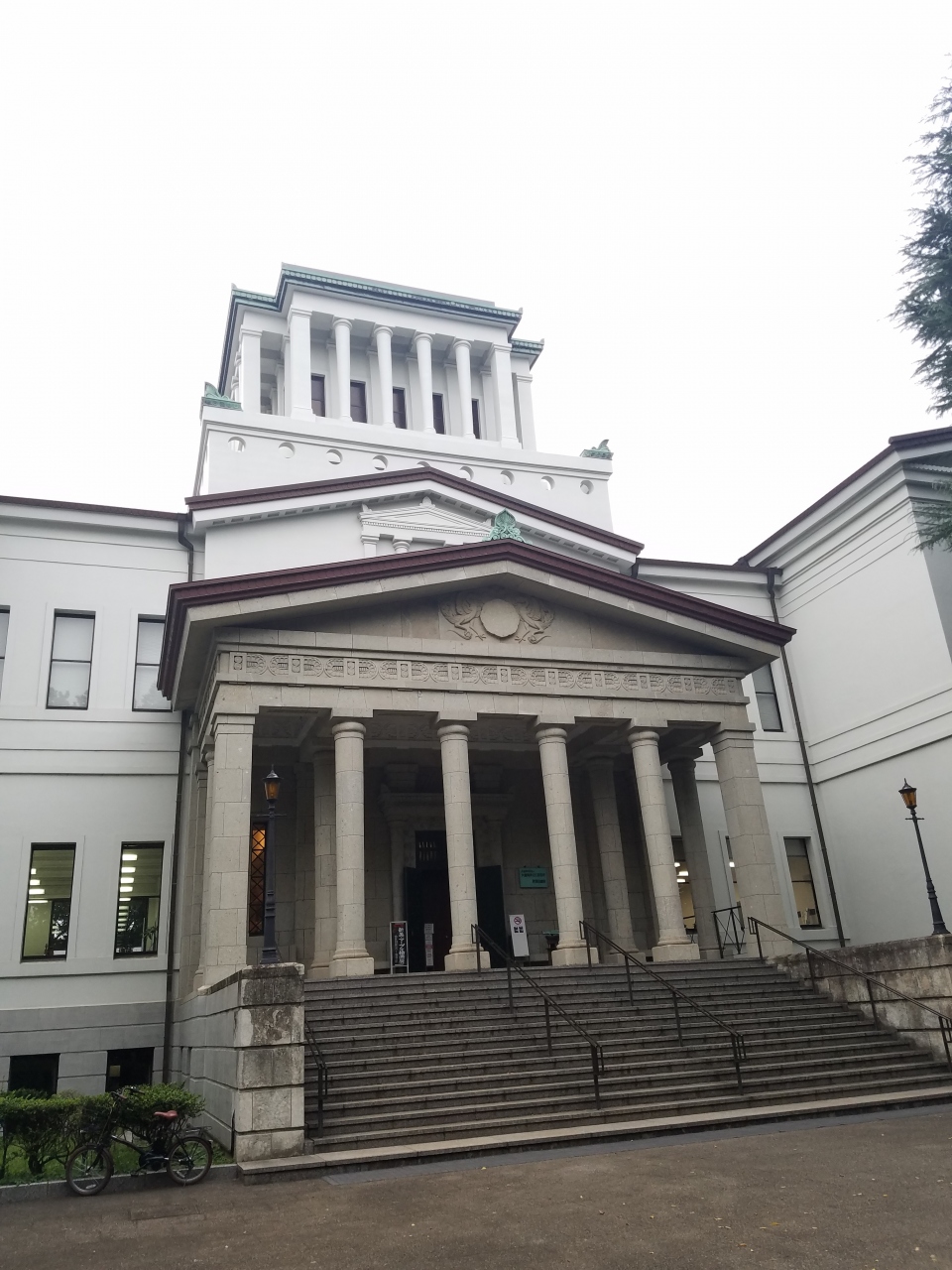 1932年に大倉さんが創建した建物を改修しているそうですが正面のギリシャ風の柱とその上に乗っかる三角の屋根部分だけ色が少し濃いのが意味ありげでした。