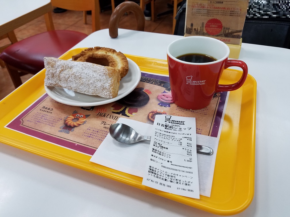 この時間でもドーナツは多くの種類がぎっしり並べられていて選ぶのが楽しかったです。