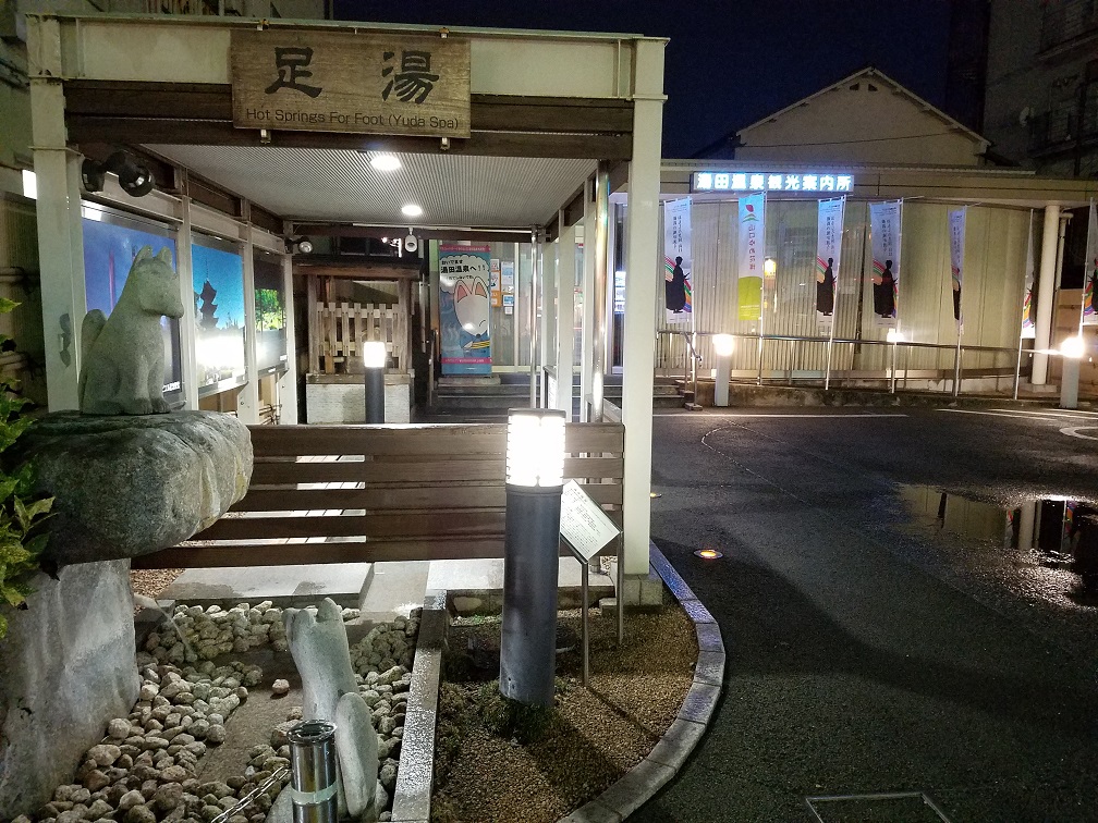 カフェの端に足湯があってさらに屋外にある足湯を見ならがゆっくりしてる人もいました。- 旅行時期