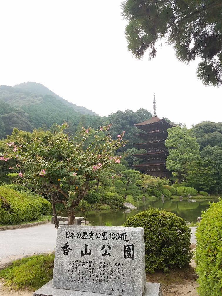 この像の周りを歩く形になる広場ですがところどころで眼下の街の風景を見渡すことができて瑠璃光寺五重塔の方角にはその説明板もあり、この後に目指すモチベーションになりました。- 旅行時期