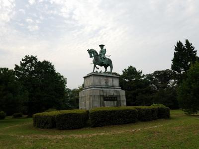 サビエル記念聖堂の正面の階段を登ると馬に跨った毛利敬親公之像がある山頂の公園に出ました。