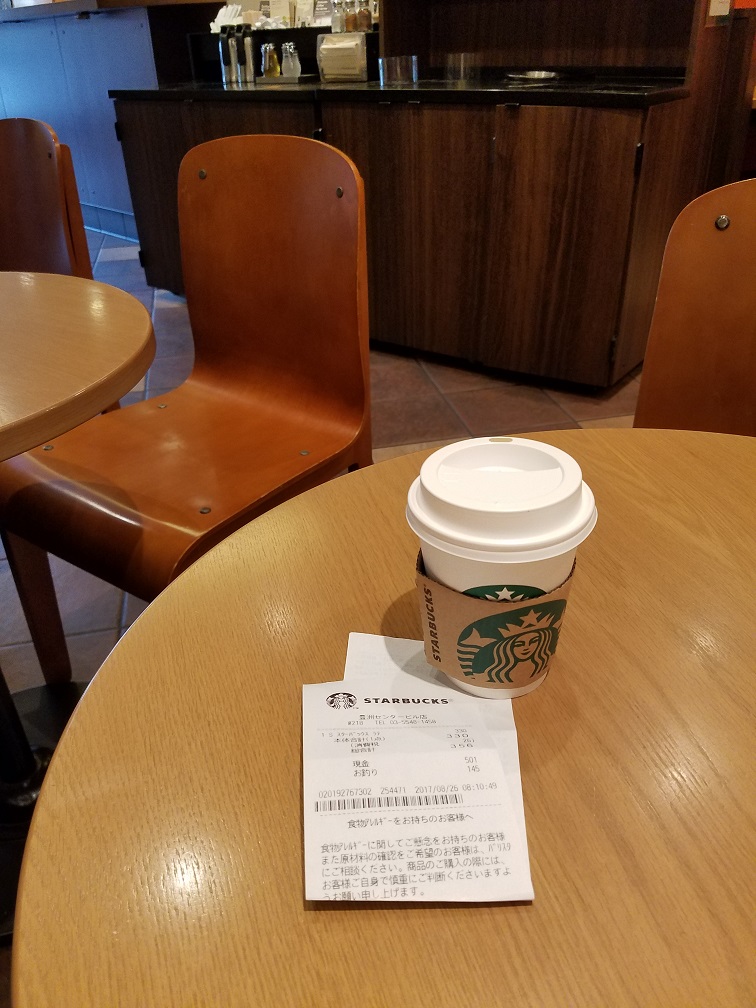 ラテのショートでクレジットカード使うのもなんなので現金で払いましたが電子マネーが使えるスタバが増えると便利なのですが。- 旅行時期