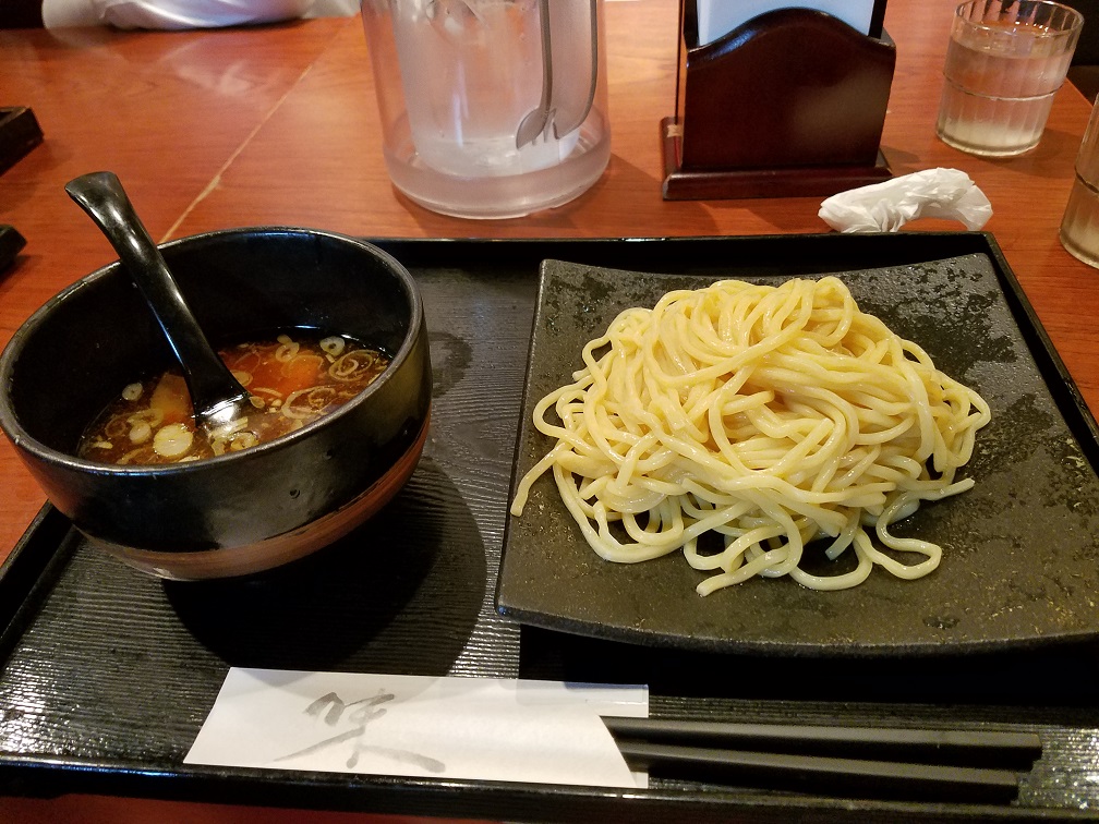 初めて行ったので食券機の一番左上にあった醤油つけ麺にしました。