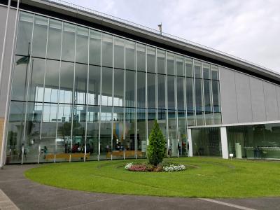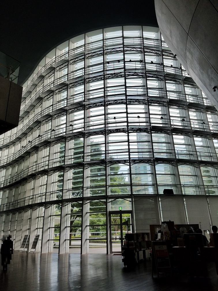 ガラスの曲面が特徴的な外観の美術館ですが建物に入っても空調の温度設定が高めなのか3階まで吹き抜けの大きな空間が冷やせないのか、ややムッとする空気でした。