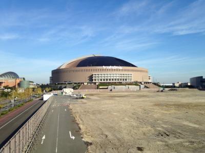 試合があるときならば囲気は野球一色なのでしょうが朝に行ったのと近づくとドーム型というよりは円筒型に見えるので国際的な催しなどを行う大きな展示場のような印象を受けました。