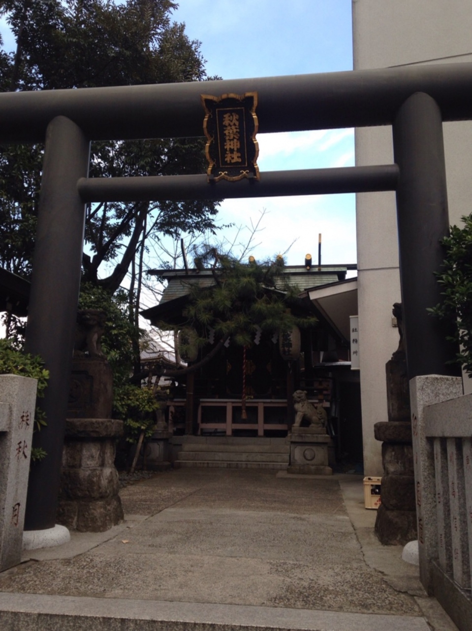 少し引いて道路の反対側から建物を見ると坂になった表参道に対して水平に建てられているのがよく分かります。- 旅行時期