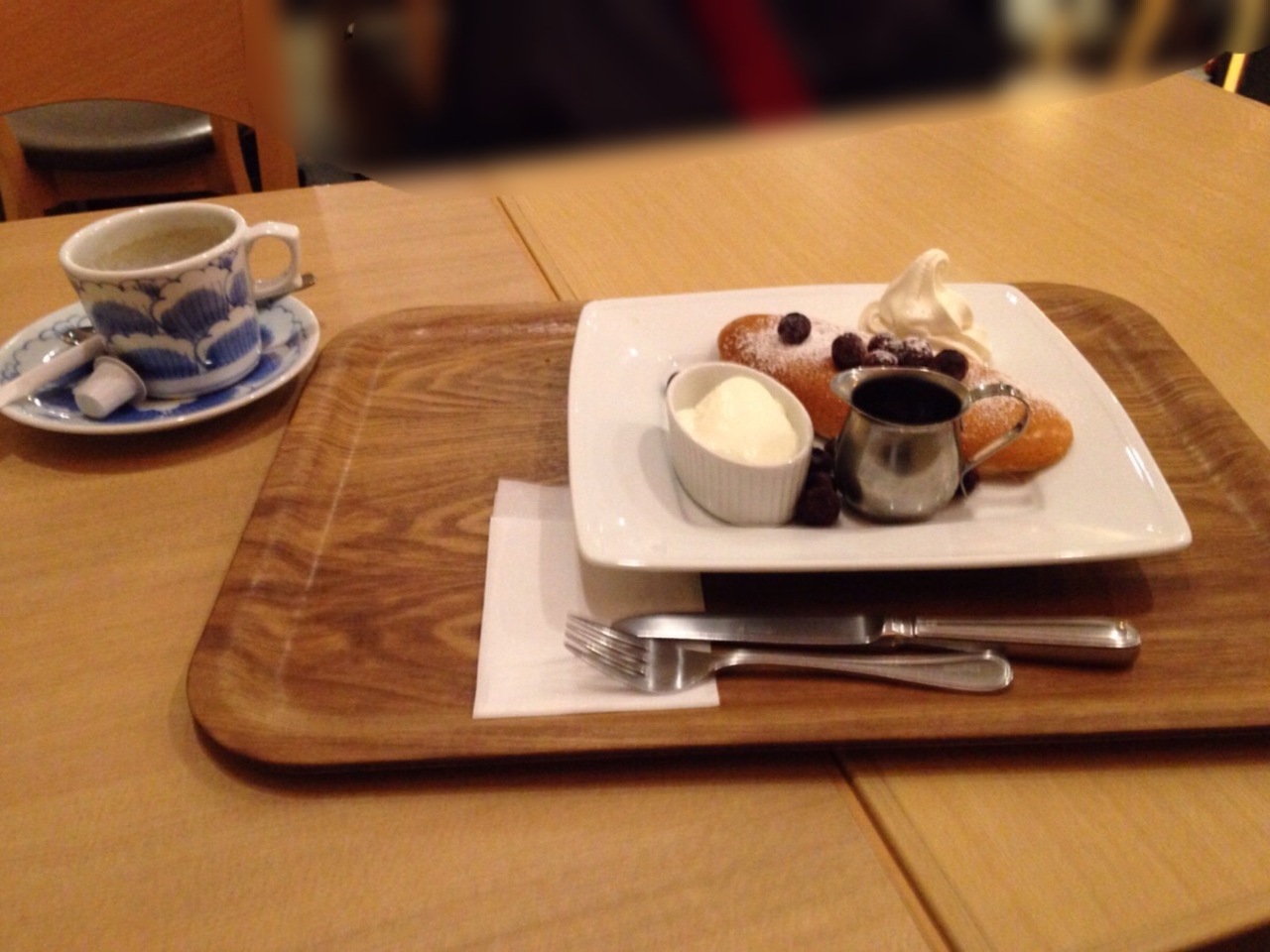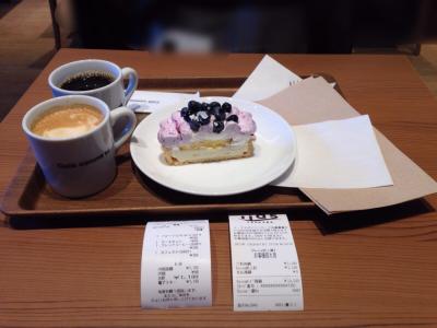 カフェですがフードとしてはパスタとケーキのようであまり時間が無いのとブルーベリーが目に付いたのでブルーベリーとクリームチーズのケーキとブレンド、追加でカフェラテにしました。