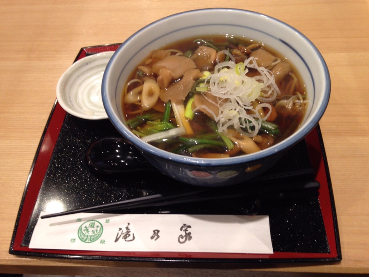フグ入りのランチがあったようですが終了していたのと、この時はあまり量が食べられなさそうだったので温かい山菜そばを単品で注文。