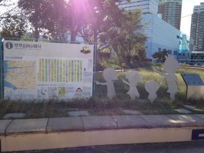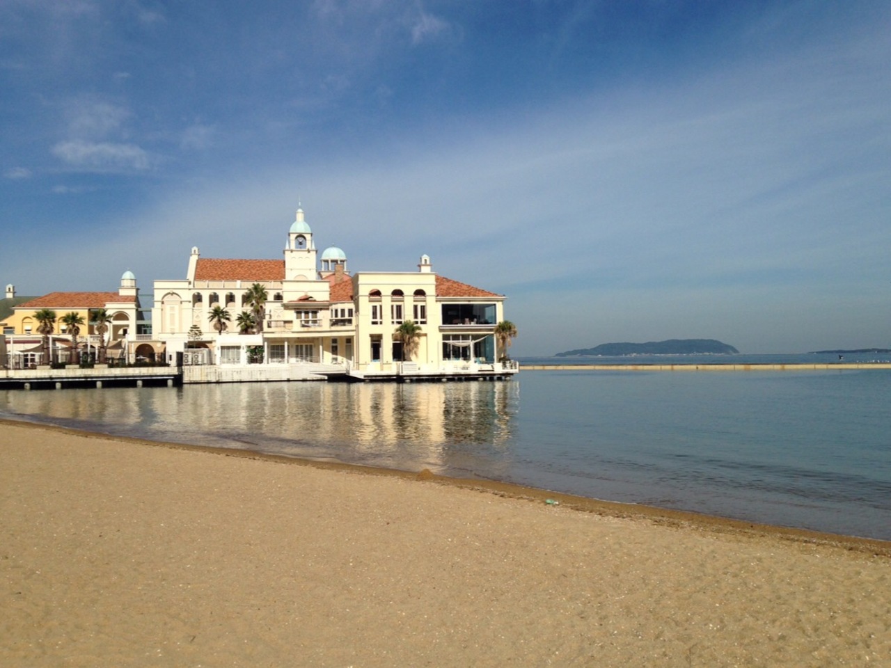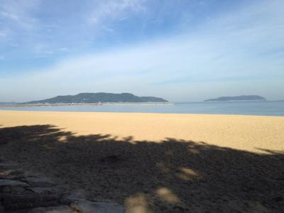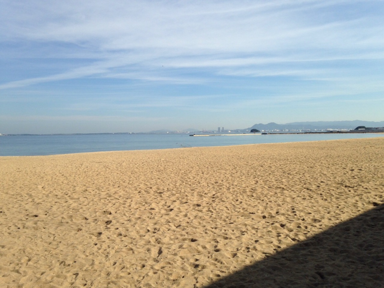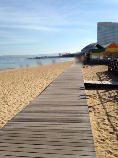 土曜の朝に百道エリアを散歩していたら思いもかけず綺麗な砂浜に出ました。