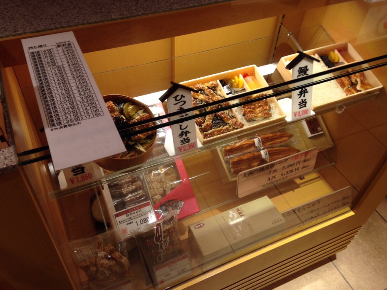 蒲焼を持ち帰りしました。4切れから持ちかえりできるようでしたがサンプルの蒲焼の大きさと値段を考えて6切れにしました。