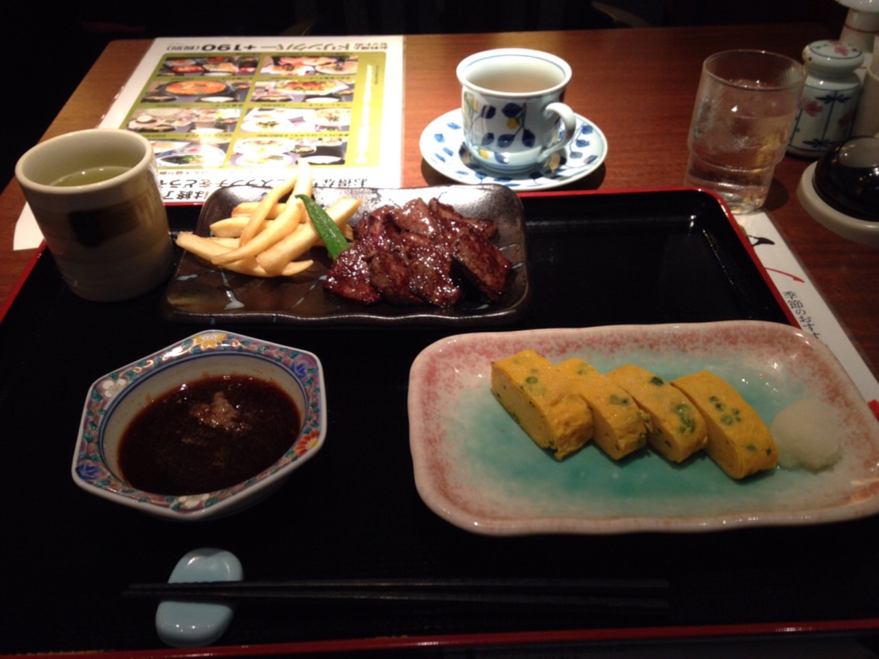 ステーキ単品、だしまき卵、ドリンクバーで1400円程でした。
