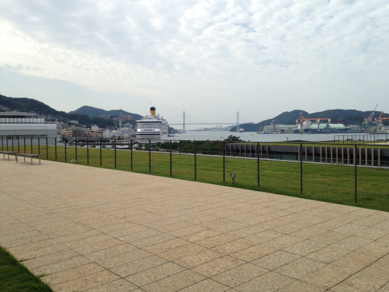 3階にあたるので近くの松が枝国際ターミナルの屋上より高いのでこの辺りでお手軽に海を見るには最も良いところかもしれません。