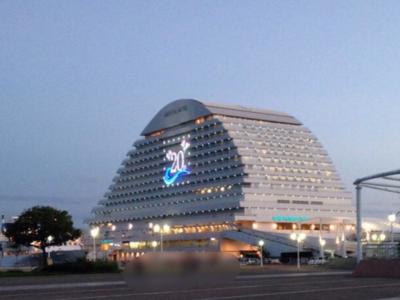 中突堤の先端にある波を模した何とも優雅な形のホテルです。