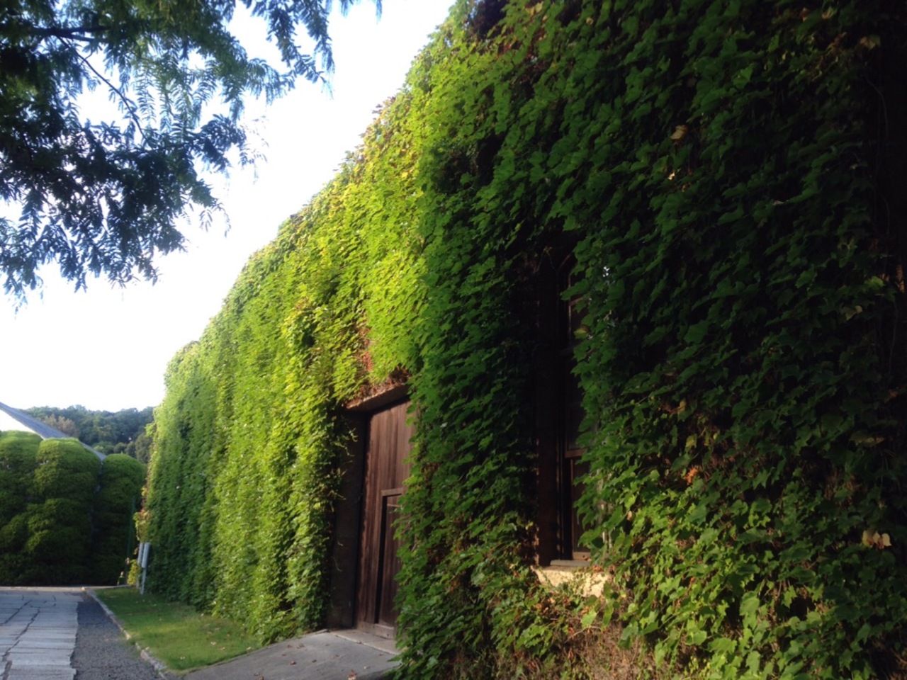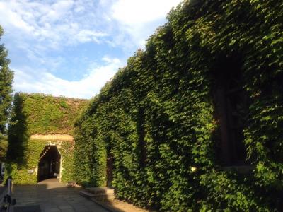 煉瓦の壁が隠れてしまうほどの緑色のツタの生命力が溢れていて見方によっては怖い程でした。