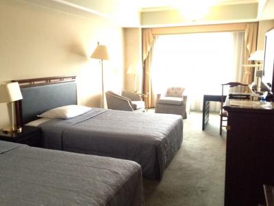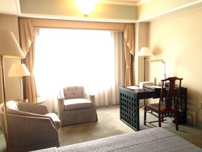 ただしツインということを考えても部屋が広く、机とソファがあっても全く窮屈さを感じません。窓も壁一面と言ってよいほど大きいです。