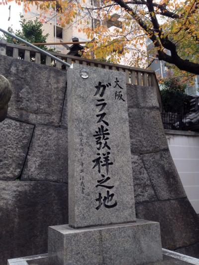一瞬、日本のガラスの発祥地なのかとギクリとしましたがそれにしては知名度が低いと思って調べてみると、オランダから長崎に伝わったガラス技術が大阪には江戸時代にこの界隈に伝わり、その後ガラス工場が立ち並んで栄えた時代もあったということのようです。石碑にもちゃんと大阪って書いてありますしね。