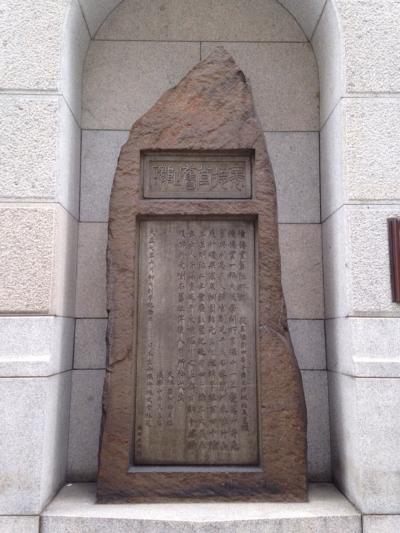 碑の上部はハンコに使われているような文字なのと本文は難しい漢字だらけで何だかロゼッタストーンみたいに存在感がありました。